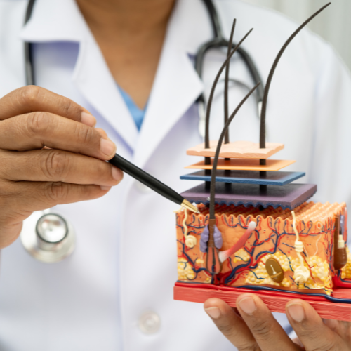 Atendemos queda de cabelo, alopecia androgenética, alopecia areata, alopecia frontal fibrosante, alopecia senil, eflúvio telógeno, psoríase, dermatite atópica de contato, seborreia, oleosidade excessiva e caspa.