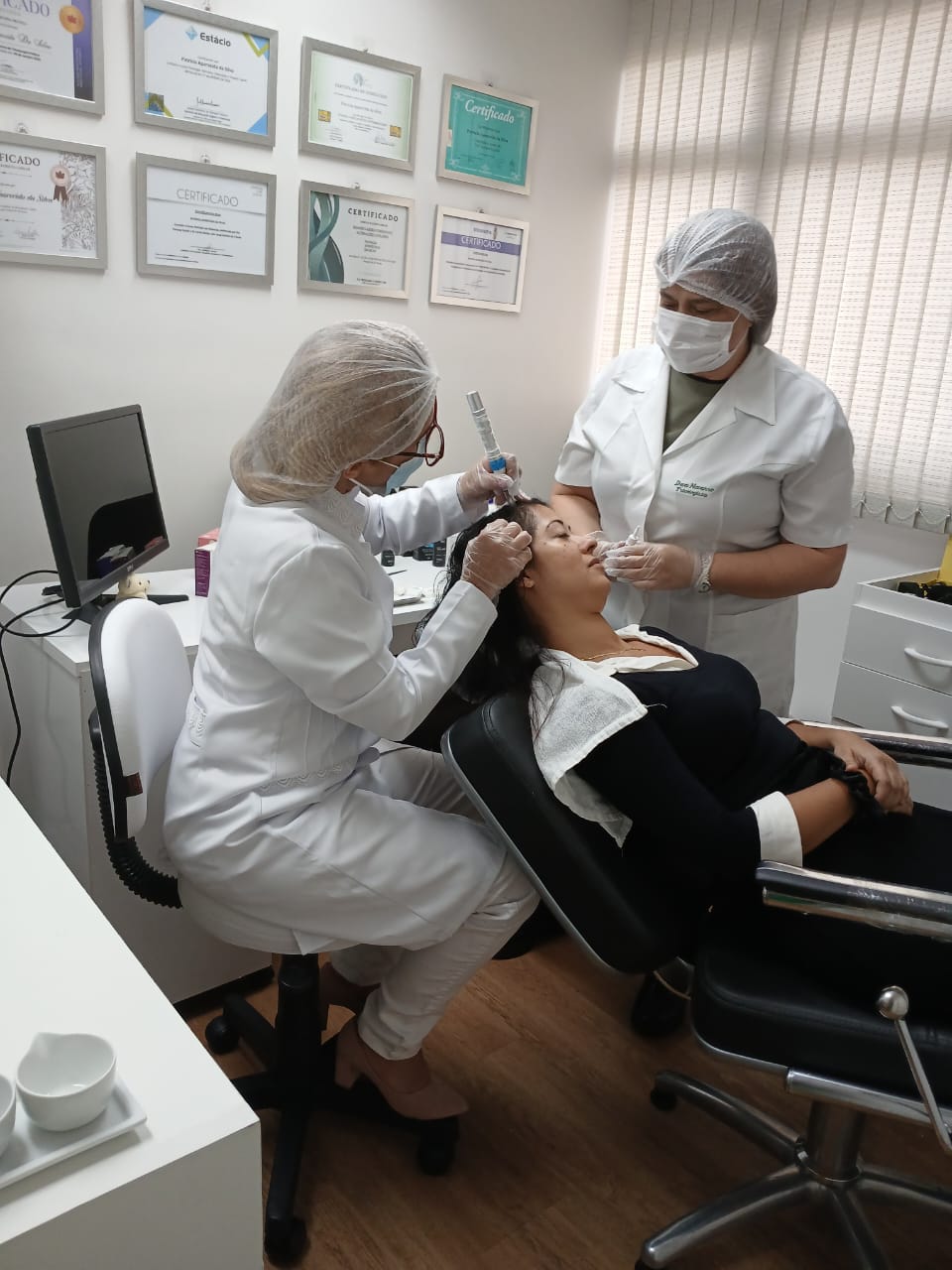 Tricoscopia, microagulhamento, vacuoterapia, argiloterapia e alta frequência.